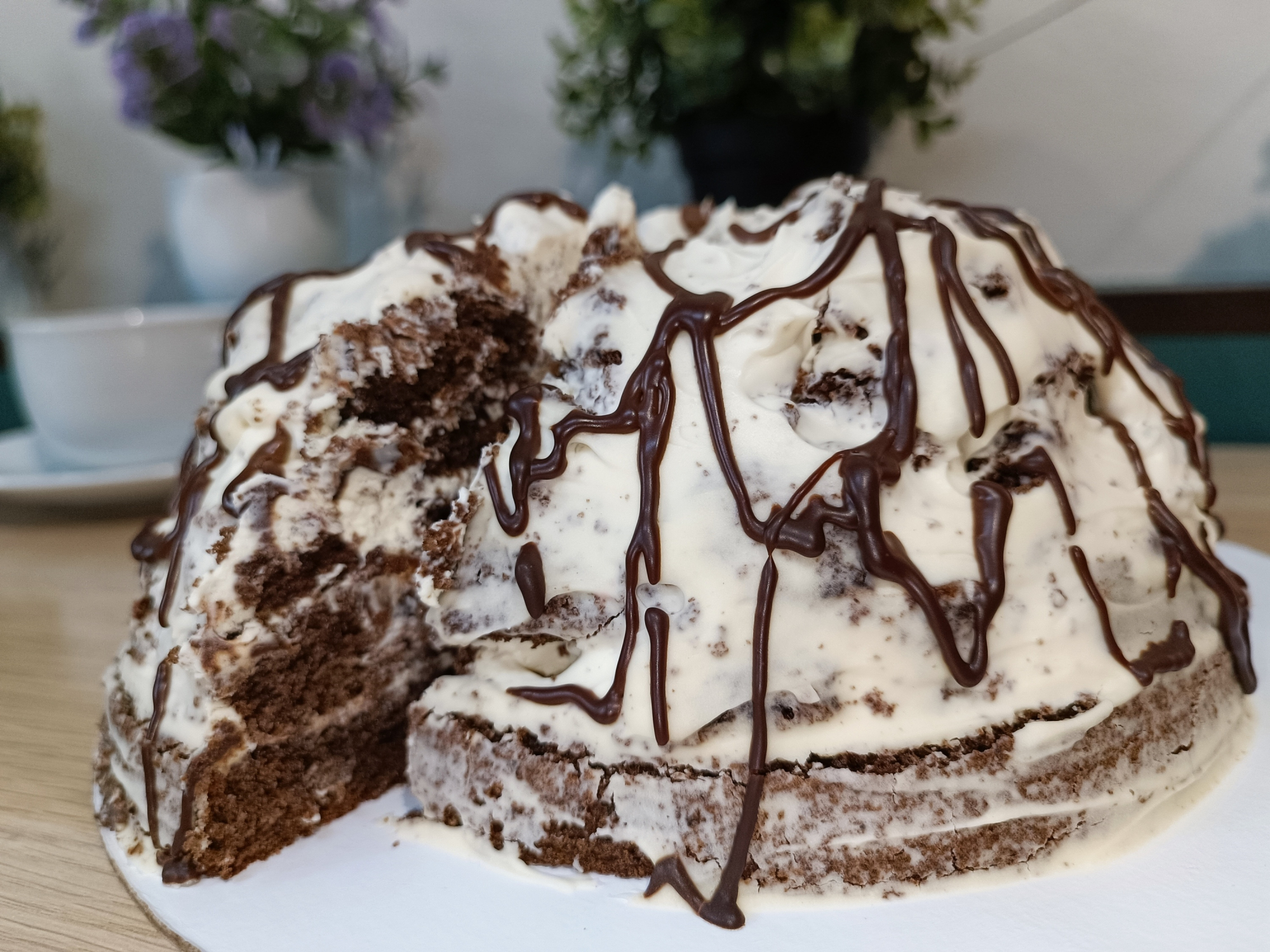 Цена 1кг.Состав: Шоколадный бисквит, сметанный крем.
