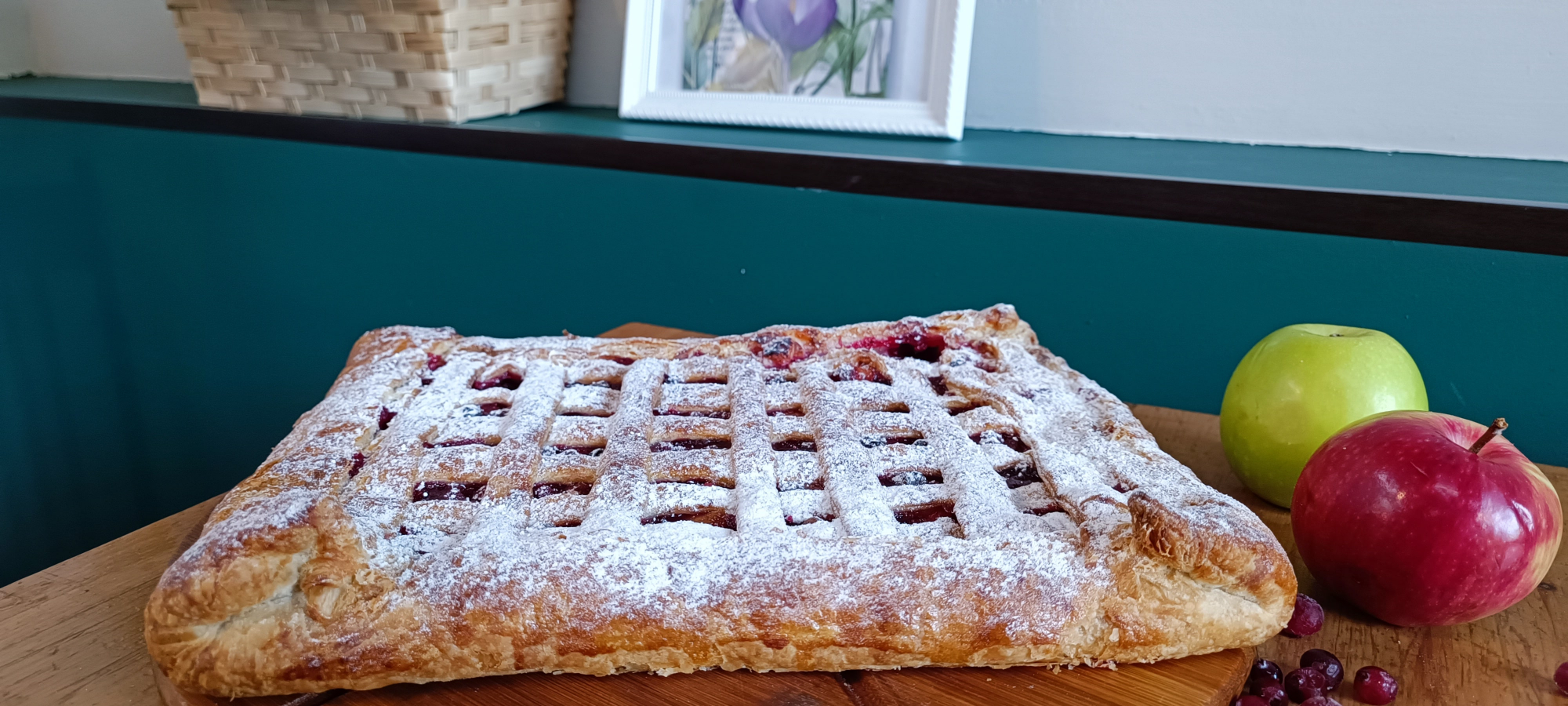 Главная / Интернет-магазин / Пироги / Пироги сладкие из слоеного теста / Пирог с творогом и брусникой сл т 1кг