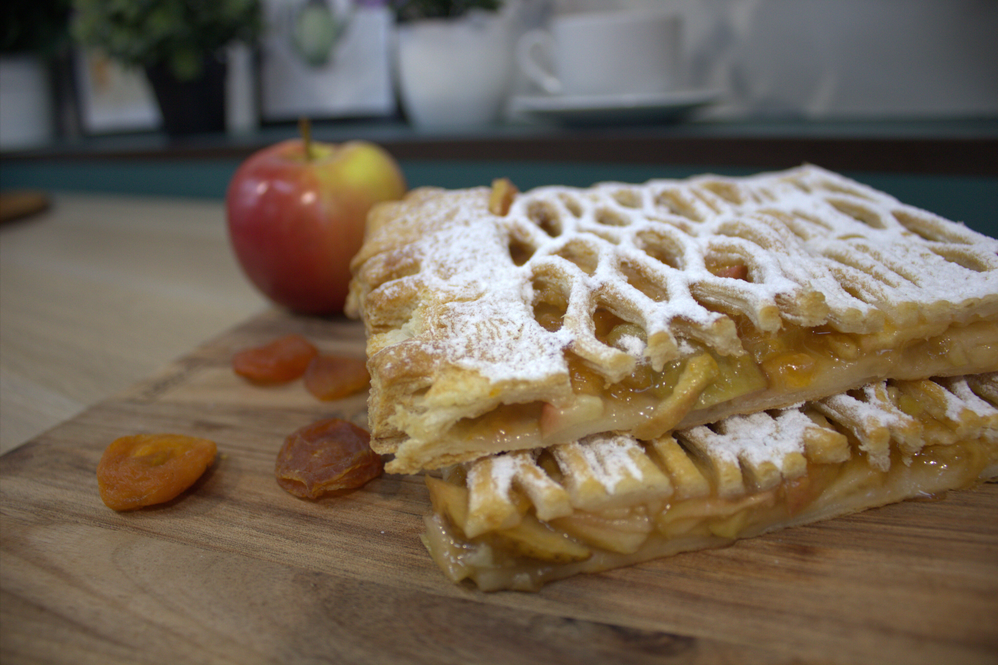 Состав: Тесто слоеное, яблоко, яблочное повидло.