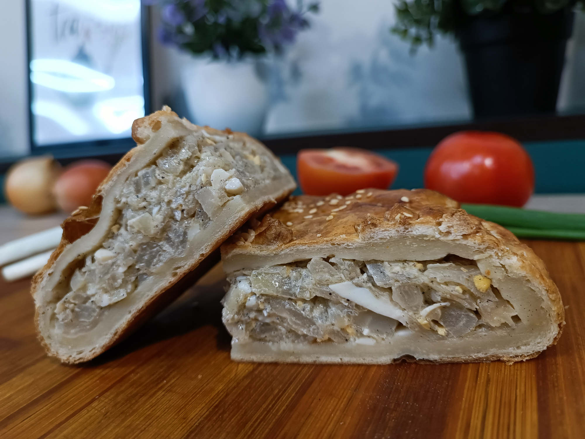 Состав: Тесто слоеное, капуста свежая, яйцо.