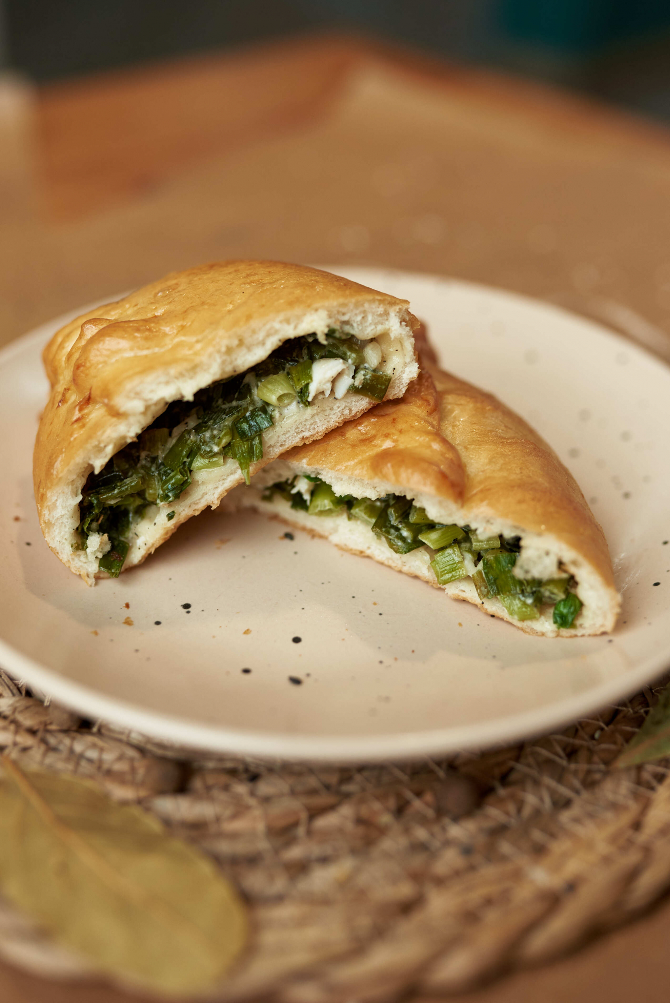 Состав: Тесто дрожжевое, зеленый лук, яйцо.