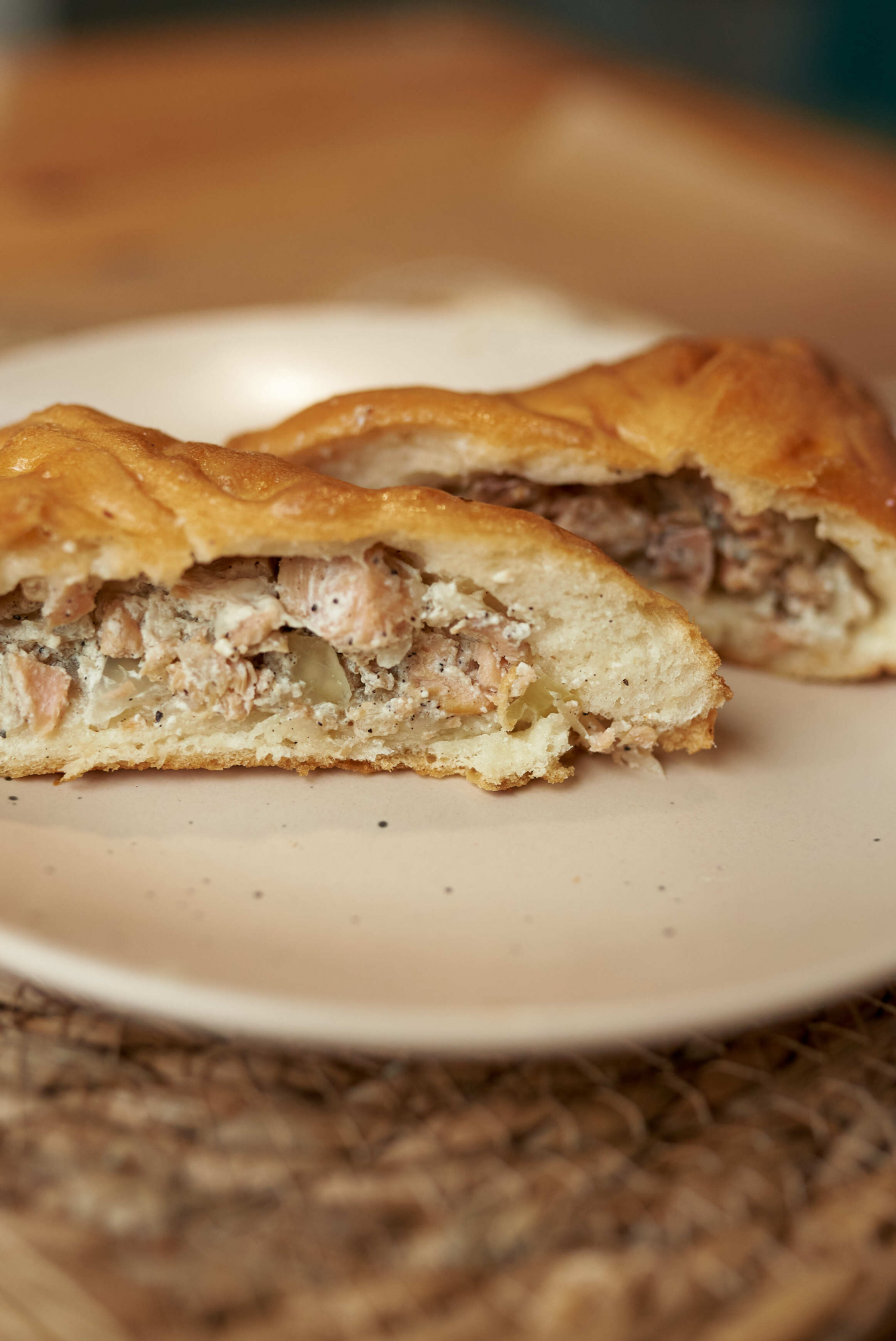 Состав: Тесто дрожжевое, филе горбуши, лук репчатый.