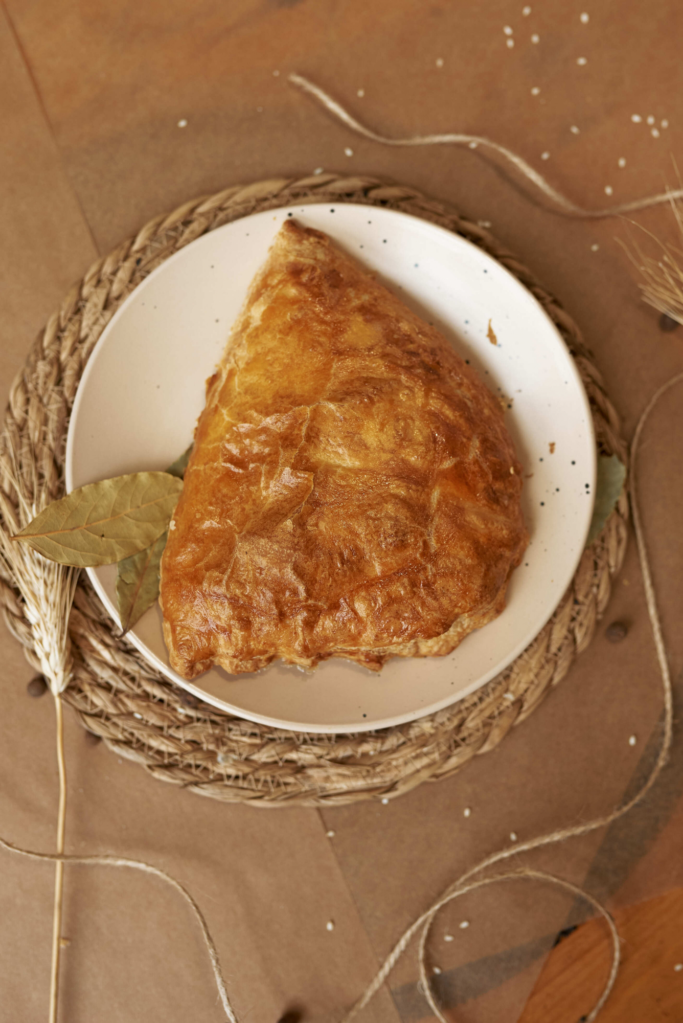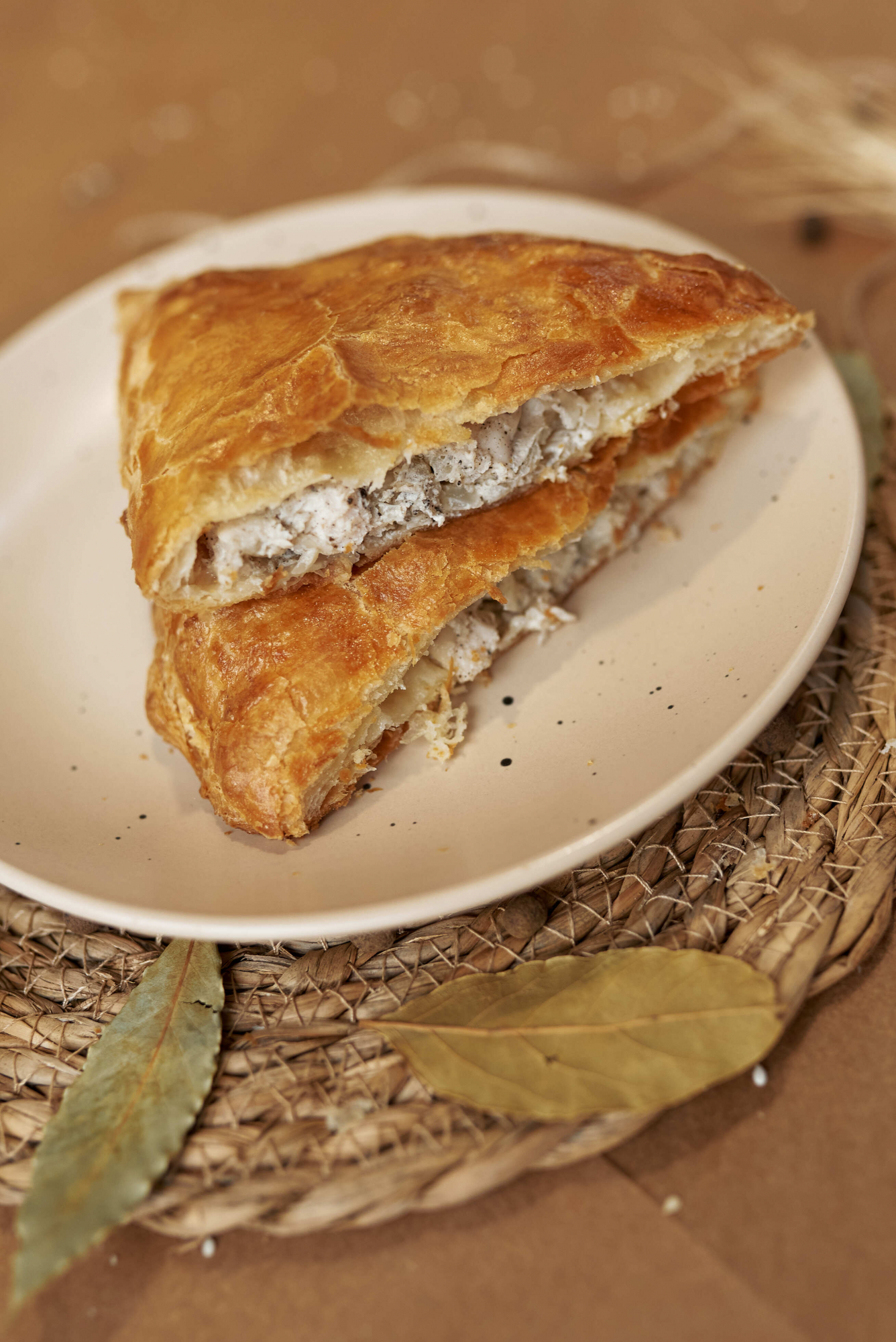 Состав: Тесто слоеное, филе куриное, лук репчатый.